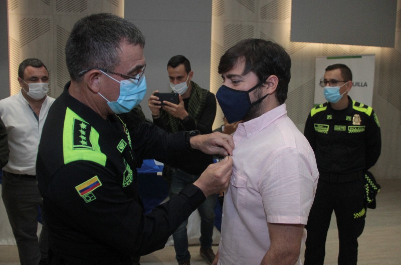 Durante su visita a la capital del Atlántico, el director nacional de la Policía, general Jorge Vargas Valencia, entregó al alcalde Jaime Pumarejo Heins la medalla de la Dirección de Inteligencia Policial ‘Teniente Coronel Javier Antonio Uribe Uribe’, mediante la resolución 03011 del 27 de septiembre de 2021.