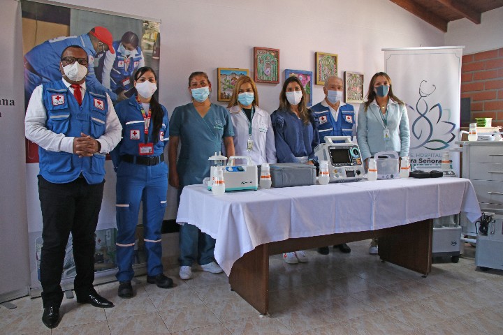 Junto con la Cruz Roja Colombiana, se entregaron los siguientes elementos a instituciones de salud: camas hospitalarias eléctricas, oxímetros de pulso, dispositivos CPAP, flujómetros de pared, nebulizadores, aspiradores torácicos, concentradores de oxígeno, bombas de infusión, humidificadores de burbujas, catéteres nasales, kits para nebulización de adultos y niños, fonendoscopios de doble campana, tensiómetros, resucitadores y carros de paro completos.
