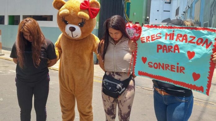 Aprovechando día de San Valentín Policía Peruano disfrazado de oso captura a traficantes de droga