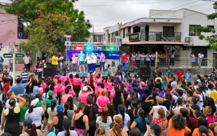 La actividad se desarrolló en el barrio Villa Estadio y contó con la presencia de más de mil habitantes de diferentes sectores del municipio, quienes disfrutaron de una clase de Rumba terapia dirigida por los bailarines Alex Gutierrez, Jefry Oquedo y la influencer Giselle León.