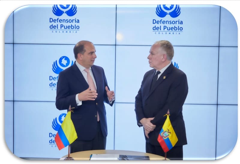 El Defensor del Pueblo, Carlos Camargo, firmó una carta de entendimiento con su homólogo ecuatoriano (e), César Marcel Córdova, con el fin de intercambiar experiencias exitosas y buenas prácticas en la promoción, protección y defensa de los derechos humanos.