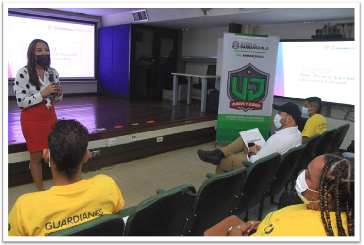 Esta estrategia también cuenta con el seguimiento y acompañamiento de un grupo psicosocial e interdisciplinario del equipo de la Oficina para la Seguridad y Convivencia Ciudadana, quienes brindan orientación a los jóvenes vinculados a Vuelve y Juega, junto con sus familias. De esta manera se apunta al fortalecimiento del tejido social en barrios priorizados de Barranquilla.