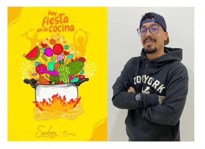 “En mi propuesta expreso que la fiesta en la cocina empieza desde lo ancestral, su magia entre colores, sabores y música. Es una invitación a ser parte de esta gran celebración, porque en los 15 años de Sabor Barranquilla: ‘Hay fiesta en la cocina’ y tenemos que celebrarlo como se debe, entre cucharas y calderos, entre parrillas y fogones, sirviendo los ingredientes que nos representan, unidos alrededor de la mesa”; de esta manera definió su creador el diseño escogido, que debía estar acorde con la temática principal de la feria.