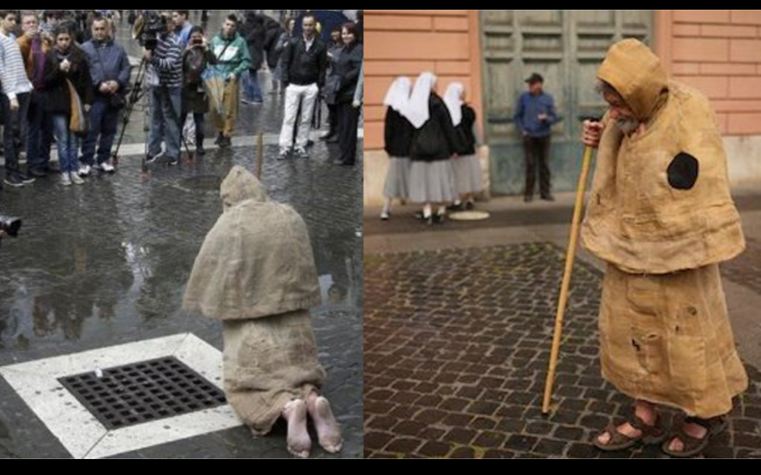 Mientras los cardenales se encierran en la Capilla Sixtina y el mundo contiene la respiración, Coppo se arrodilla en la plaza, ajeno al bullicio, descalzo sobre el mármol, rezando hasta que el humo blanco anuncia la elección. No busca cámaras ni entrevistas; su presencia es discreta, casi invisible entre la multitud, pero profundamente sentida por quienes lo reconocen. Cuando finalmente aparece el nuevo Papa, Coppo se levanta, toma su bastón y se marcha como llegó: en silencio, caminando.