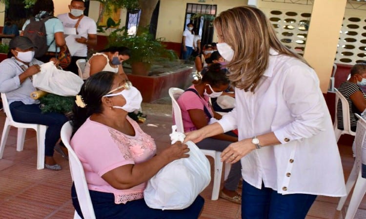 Candelaria._ La secretaria de la Mujer y Equidad de Género, Dorita Bolívar Ebratt, visitó el municipio de Candelaria para hacer la entrega de 100 donativos, por parte de la Unidad para la Atención y Reparación Integral de Víctimas a mujeres afectadas por el conflicto armado, con el apoyo de la Alcaldía Municipal y el equipo de la Línea Violeta #702 de la Gobernación del Atlántico.