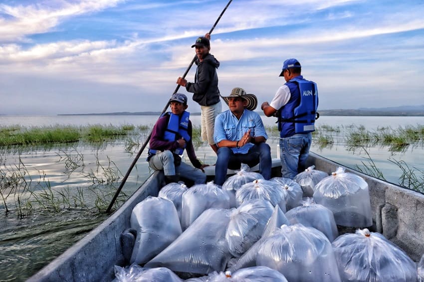 El embalse de El Guájaro, a la altura del corregimiento de La Peña, Sabanalarga, recibió la siembra de 350.000 alevinos de bocachico y 10.000 de coroncoro, especie nativa en peligro por distintas amenazas como la calidad de las aguas.
