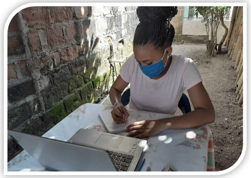 Andrea Carolina Corzo Díaz, becada Drummond en el 2015, manifiesta las dificultades y retos que ha asumido durante la pandemia: “Al principio fue muy difícil adaptarse. Estábamos acostumbrados a lo presencial, y como vivo en el corregimiento de Cuatro Vientos (El Paso, Cesar) y acá no hay mucha cobertura de internet, me tocaba ir donde los vecinos que contaban con wifi. Era mucho estrés y la inconformidad de no tener ese servicio”.