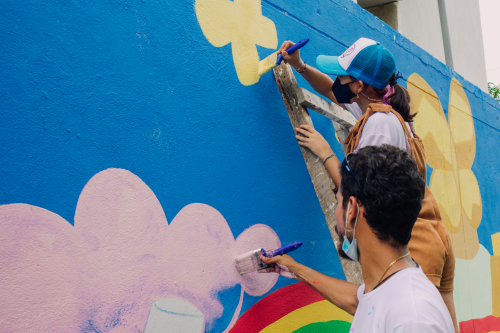 Fue una jornada llena de música, color y creatividad, buscando construir la Barranquilla del futuro con gran enfoque en la juventud y el emprendimiento. En 11 horas un paredón gris y manchado pasó a ser un mural lleno de distintos objetos, figuras y colores alusivos a la ciudad.