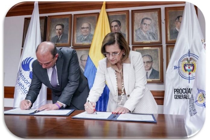 La Procuradora General de la Nación, Margarita Cabello Blanco, y el Defensor del Pueblo, Carlos Camargo Assís, suscribieron hoy una directiva para impulsar en los territorios la participación de las víctimas ante los 10 macrocasos abiertos por la Jurisdicción Especial para la Paz, (JEP), a propósito de la inconformidad expresada por ellas frente al abandono e invisibilizacion del que han sido objeto.