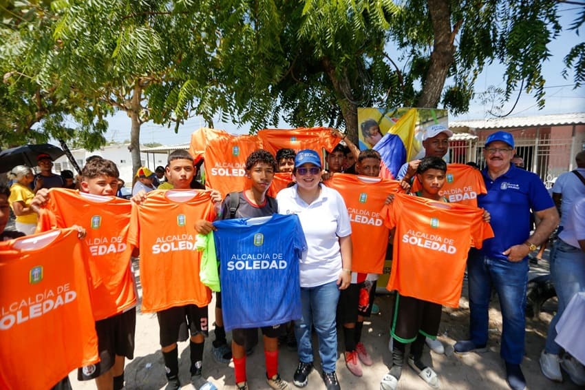 La alcaldesa de Soledad, Alcira Sandoval, asistió al lanzamiento de la actividad deportiva y entregó los uniformes a los integrantes de 10 equipos de Don Bosco IV, Villa María Selene, Ciudad Caribe III y IV, La Central, Nueva Esperanza, Si Nos Dejan, Villa del Carmen, Villa Santa ente otros.
