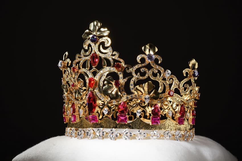 “Florecer Real” es el nombre de la corona inspirada en la flora colombiana, llena de colores y matices. Un diseño de alta joyería elaborada en plata de Ley 950 y piezas en bronce con baño de oro de 24 quilates, con engaste de gemas en tonos que van desde el morado oscuro al claro, del rojo intenso al fucsia, del vino al naranja y brillos incoloros aportados por más de 500 circones suizos, así como de formas que hacen alusión a las enredaderas características de los manglares y las ciénagas representadas en una zona de media lunas que da soporte a la pieza.