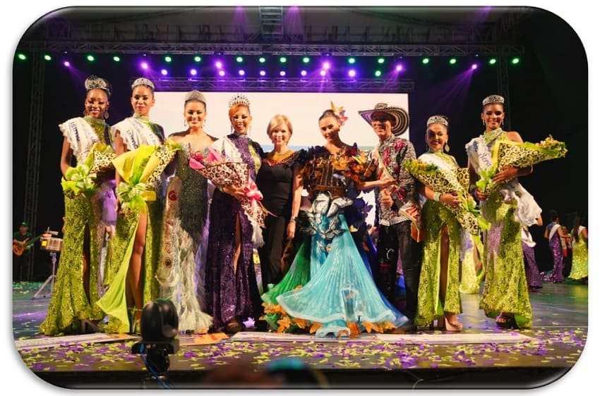 Con el espectáculo ‘La Esquina Alegre de Colombia’, dirigido por Osvaldo Rincón, las 34 embajadoras de los barrios, exaltaron las tradiciones populares que se viven en diferentes rincones de Barranquilla, la alegría y espontaneidad que caracteriza al barranquillero, cómo viven en cada época del año. Sonoridades, sabores, bailes, celebraciones, y la exaltación de personajes de la ciudad, estuvieron presentes en la gran puesta en escena que contó con más de 200 artistas integrantes colectivos dancísticos, comparsas, cumbiambas y líderes de la tradición, entre otros.